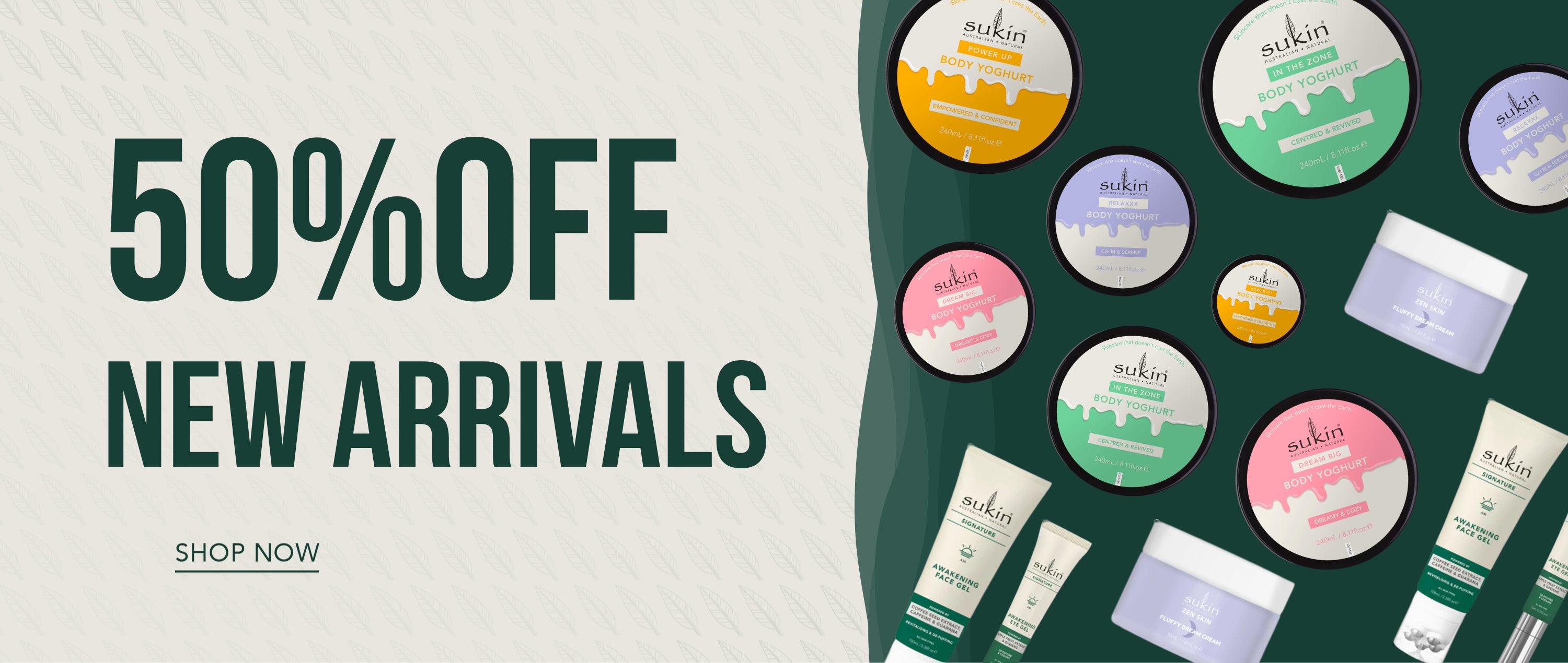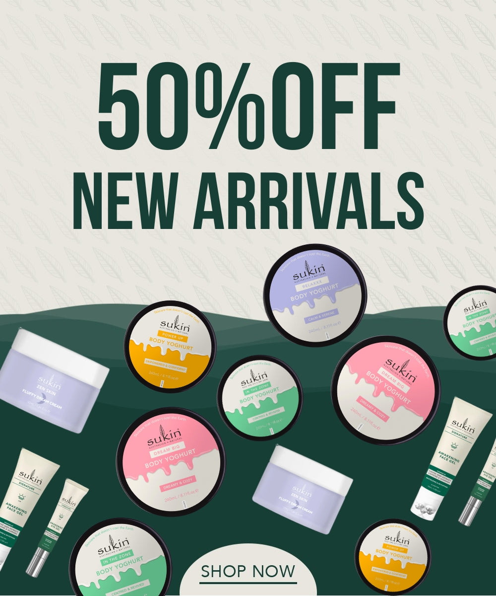 *50% Off offer applies to selected Sukin products, excluding bundles, Fressko Cups, Signature Cleansing Balm, New Cleansing Facial Wipes, Hair Masques, Chemist Warehouse exclusive All-in-One Hair Spritz, Body Butter & Scrubs, selected Travel Size products, e-Gift Cards and Gift Packs. Other selected items may also be excluded, and exclusions may change during the promotion. Offer available for a limited time only, while stocks last, exclusively at sukinnaturals.com.au. Sukin reserves the right to amend, suspend or cancel this promotion at any time without prior notice. Misuse of the promotional code may result in withdrawal of the discount.